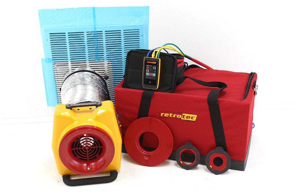 Duct pressure testing is a diagnostic procedure performed by a certified professional that measures the air tightness of a home’s duct system. One of the things that we do – both in upgrades of existing homes as well as in new construction – is duct pressure testing of the system(s). In existing homes, we usually seal duct work as part of energy efficient upgrades, so we use a blower door and a pressure pan to check each of the registers (or “supply vents”) to ensure each is sealed to less than 1 pascal. In new construction, we test duct work to make sure it meets that area’s requirements for the Energy Code; this is measured in CFM (cubic feet per minute) per 1,000SF (square feet). For this test (a formal “Duct Pressure Test”), we seal supply and return registers with grill mask or vent caps, and we use a calibrated fan to pressurize or depressurize the duct system through one of the central returns. Then, a manometer connected to the fan measures pressure differences between the fan and a reference point in a supply line of the duct system. The manometer gives a reading of the Cubic Feet per Minute at a pressure of 25 pascals (or “CFM25”), and we use that number to calculate the percentage of leakage.