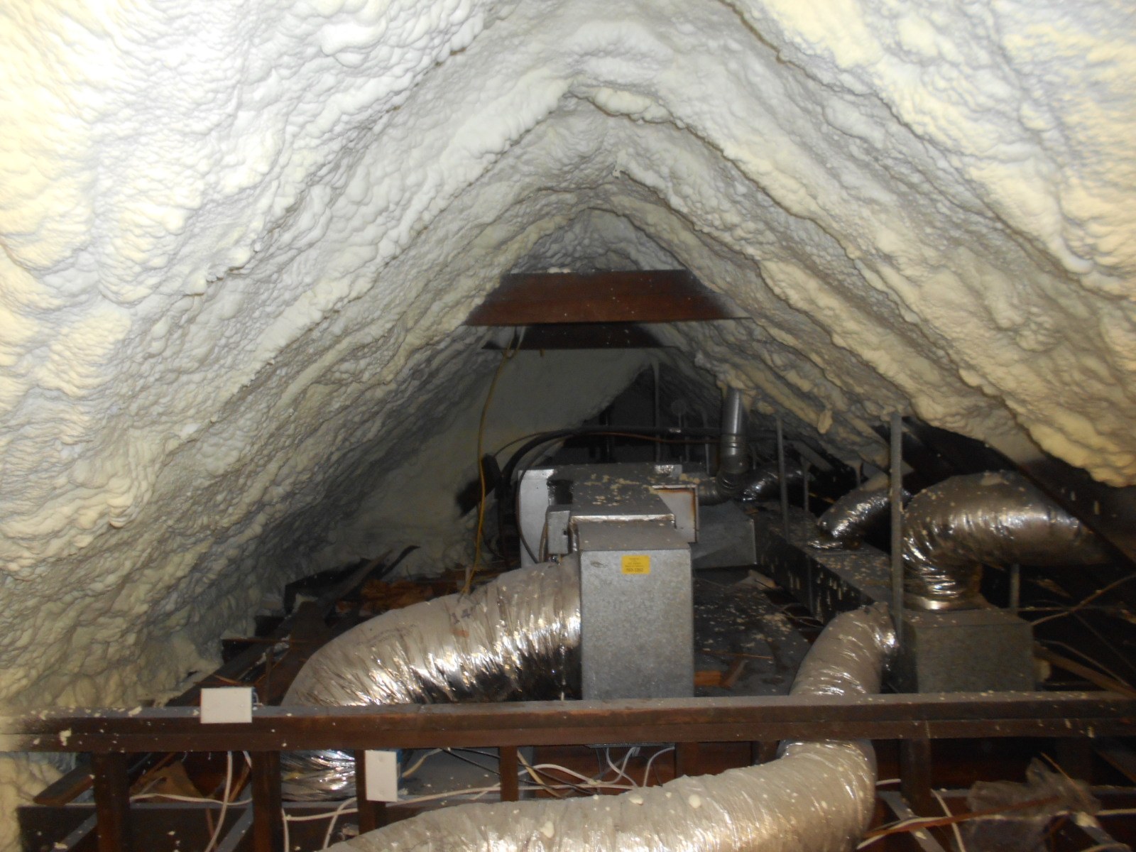 A: One added bonus of spray foaming along the roof (rather than the floor of an attic) is that the attic becomes climate-controlled storage by making that space more comfortable and freeing up your attic floor that will no longer be covered by traditional insulation. It is also shown to prolong the life of your HVAC air handler (if the air handler is in the attic) by preventing exposure to temperature extremes. Deciding whether to spray the attic floor or the roof decking sometimes comes down to budget as the attic floor can be less square footage than the roofline/decking.